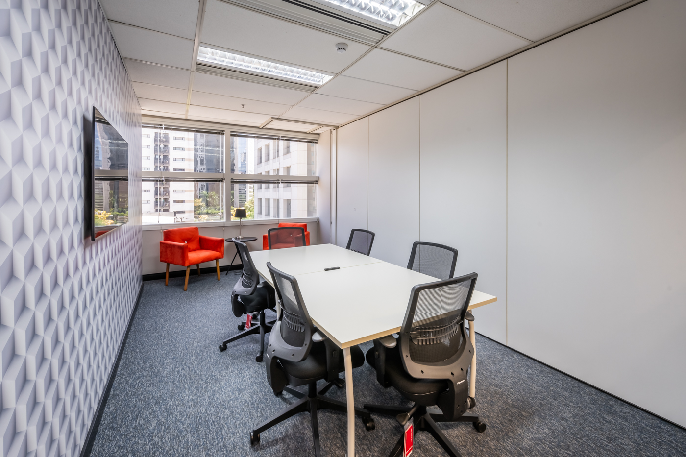 Sala mobiliada com internet, TV, cabo HDMI e câmera.